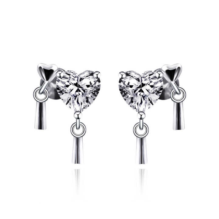 Tianyu Gems Silver-plated Gold Classic, Stylish, Sweet Style Heart-shaped Tassel Moissanite Stud Earrings