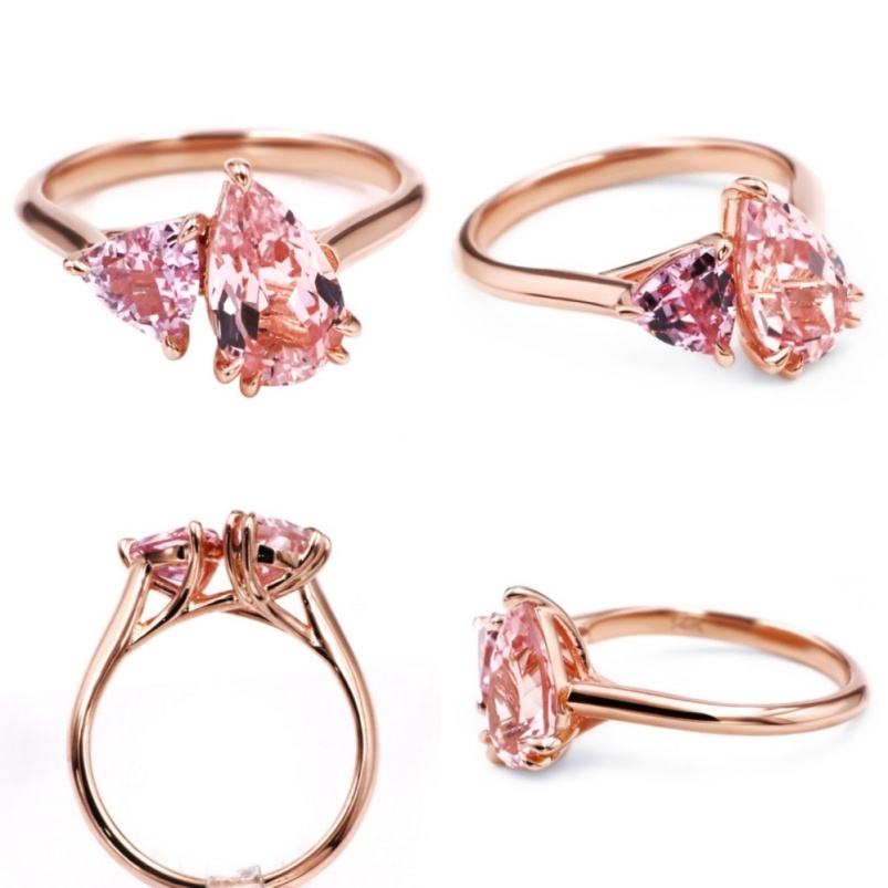 Tianyu Gems Toi Et Moi Ring 5.5mm Trillion 6x10mm Pear Pink Lab Sapphire 18k 14k Rose Gold Wedding Engagement Rings for Women