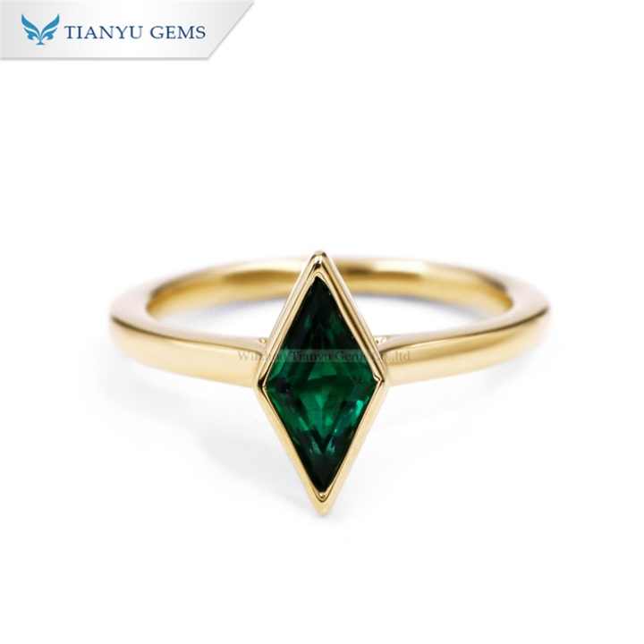 Tianyu High-end Jewelry Rhombus Emerald Diamond Bezel Setting Solitaire Engagement Ring 10K 14K 18K Platinum Wedding Bands