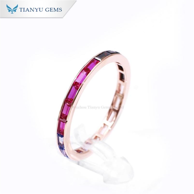 Tianyu Rectangle Cut Fancy Colorful Gemstone Engagement Rings Sterling Silver 10K 14K 18K Full Eternity Wedding Bands
