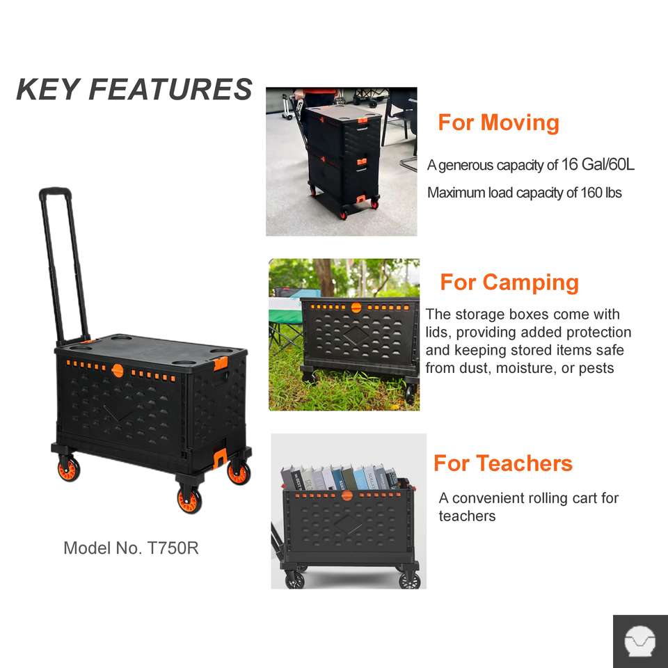 Tianyu T750R Multi-Purpose Foldable Waterproof Film Shopping Cart with Platform Design and 4'' PU Wheels