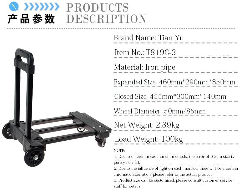 Tianyu T819G Aluminum Alloy 4-Wheel Foldable Shopping Cart with Durable Plastic Handle 100KG Capacity for Airport & Outdoor Use