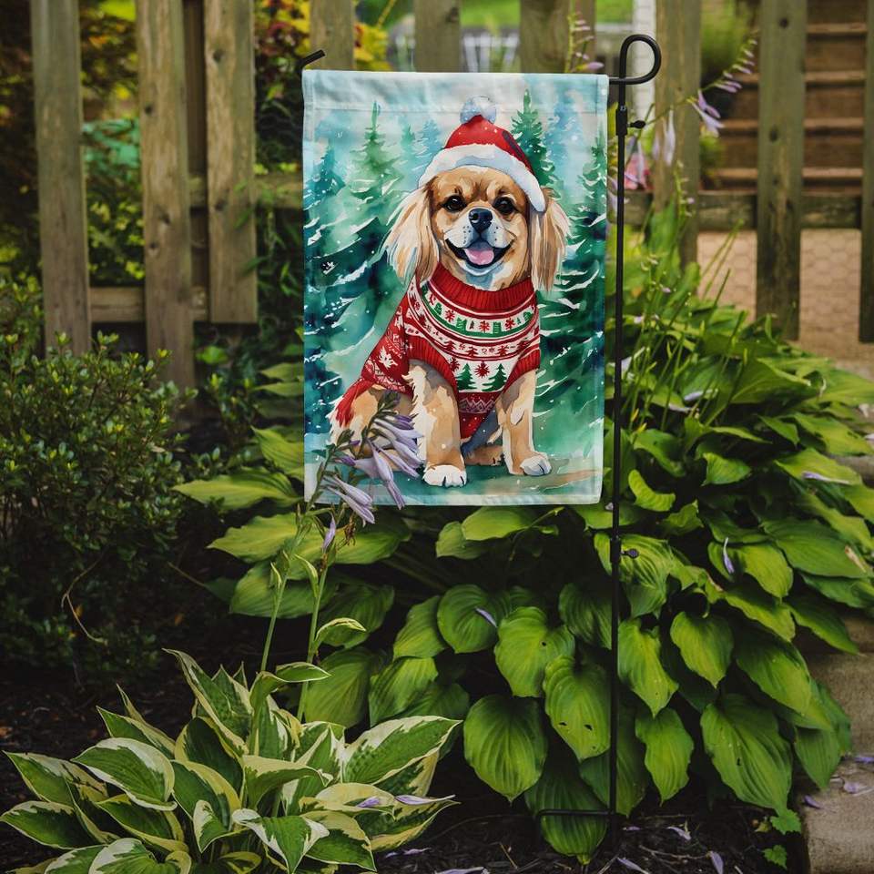 Tibetan Spaniel Christmas Garden Flag Multicolor Decorative Yard Banner for Patio Artwork Mailbox Flag for Flower Beds Yard Size