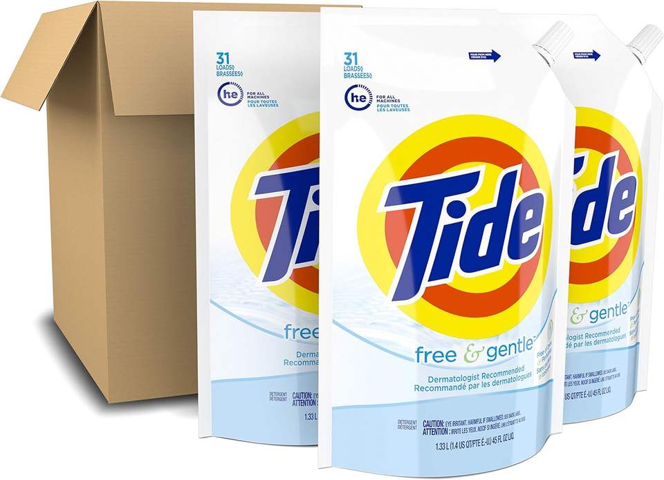 Tide Free & Gentle Laundry Detergent Liquid Soap, 93 Loads (New Concentrated), 45 Fl Oz (Pack of 3)