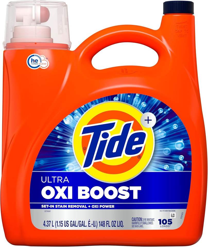 Tide Ultra Oxi Boost Liquid Laundry Detergent, 148 fl oz, 105 Loads, Advanced Stain Remover, Laundry Detergent Liquid with