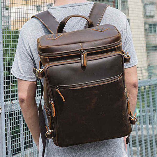 Tiding Custom Logo Large Capacity Men's Leather Laptop Backpack Waterproof and Anti-Theft Travel Bag for Business & Daily Use