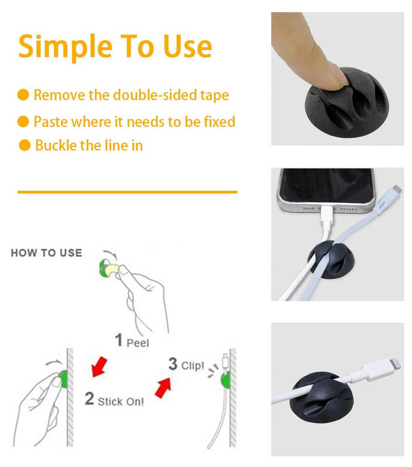 Tidy Desk Cable Winder Home Office Car Clips Cable Holder Wire Management Silicone Cable Organizer Clips