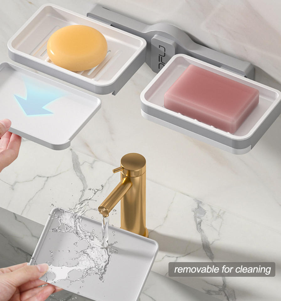 Tidytech EU Warehouse France Stock Bathroom Wall Single Tier Plastic Shower Soap Dish Holder Soap Box Soap Tray With Drainer