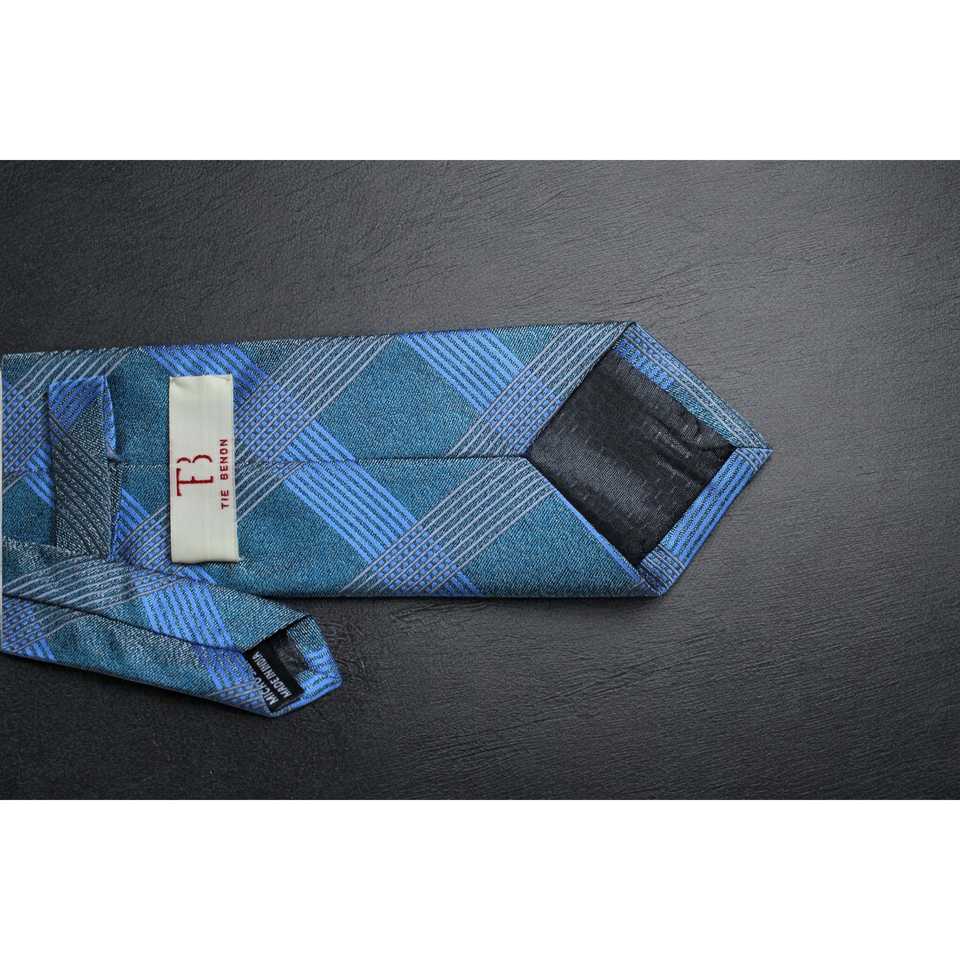 Tie Benon Elegant Blue and Grey Plaid Tie Fashion Accessories for Men