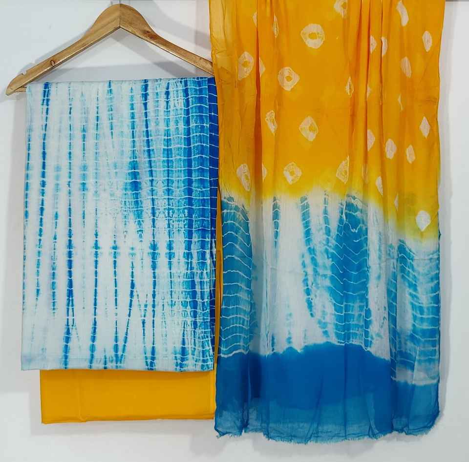 Tie and Dye Printed Cotton Fabrics in Beautiful Shades of Yellow and Blue Suitable for Use in Home Textiles and for Clothing Ma
