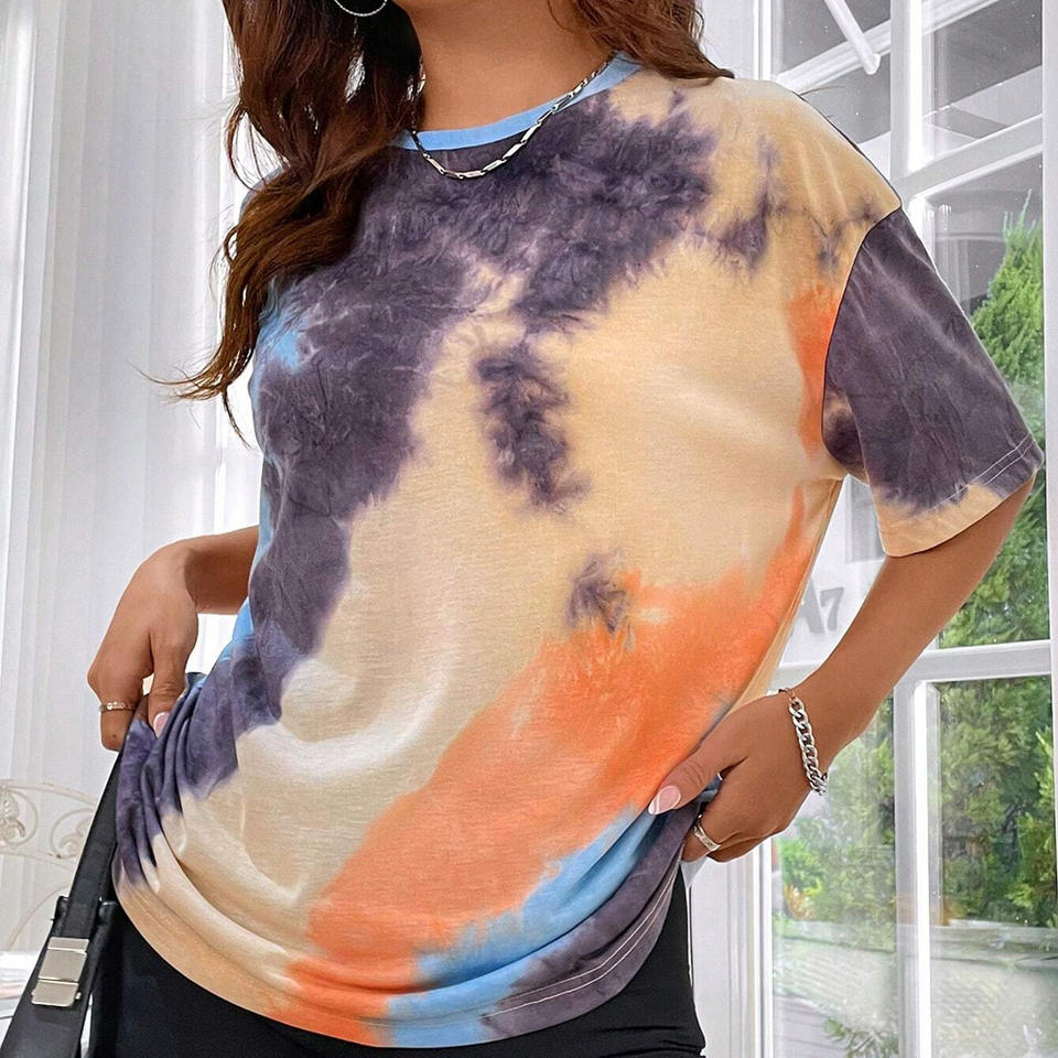 Tie dye summer shirt for women with logo customization breathable soft cotton short sleeve tee OEM and private label support