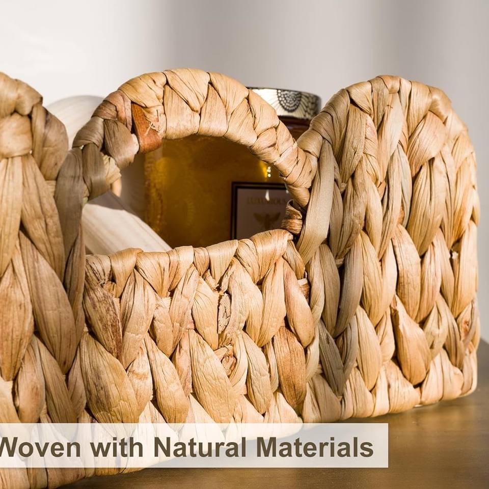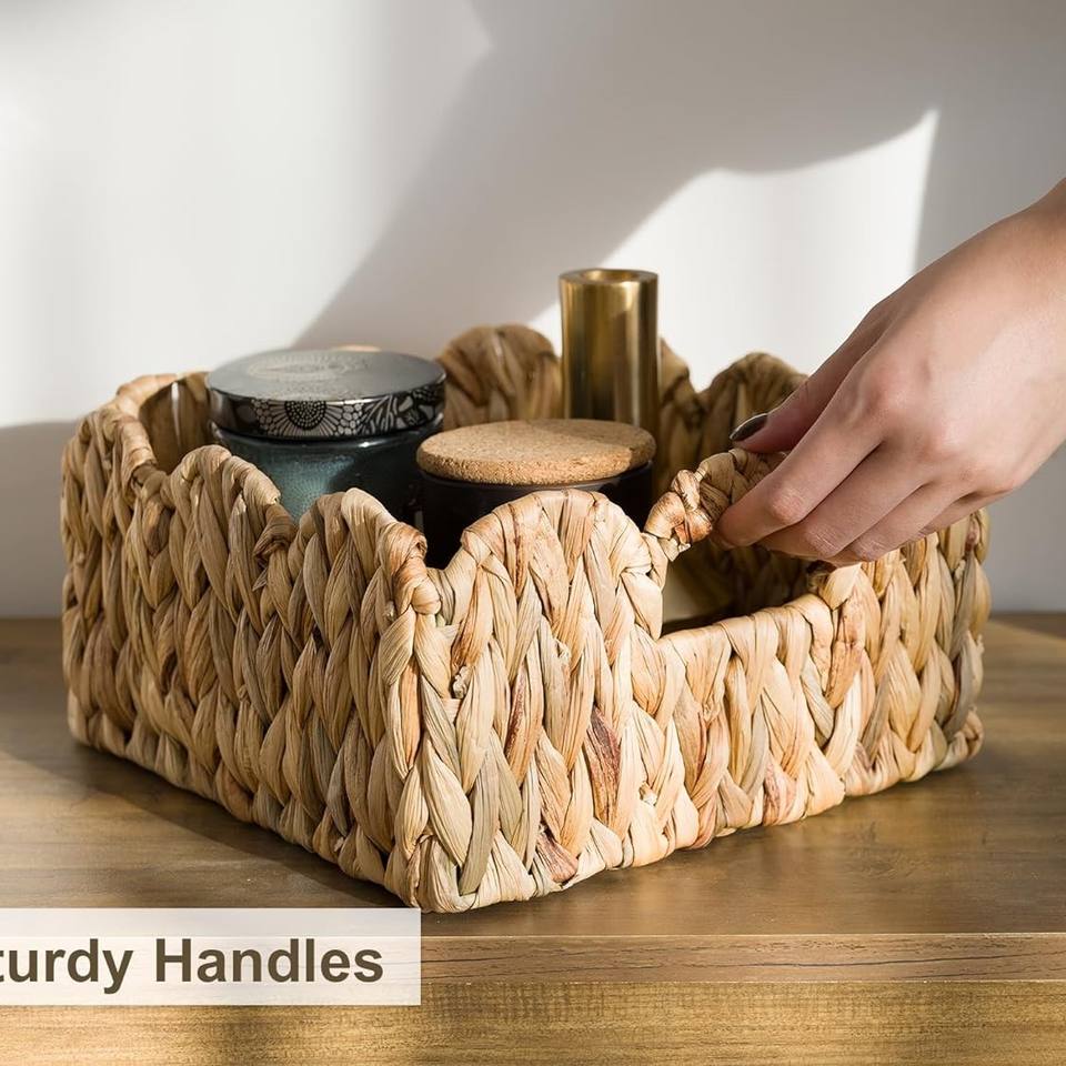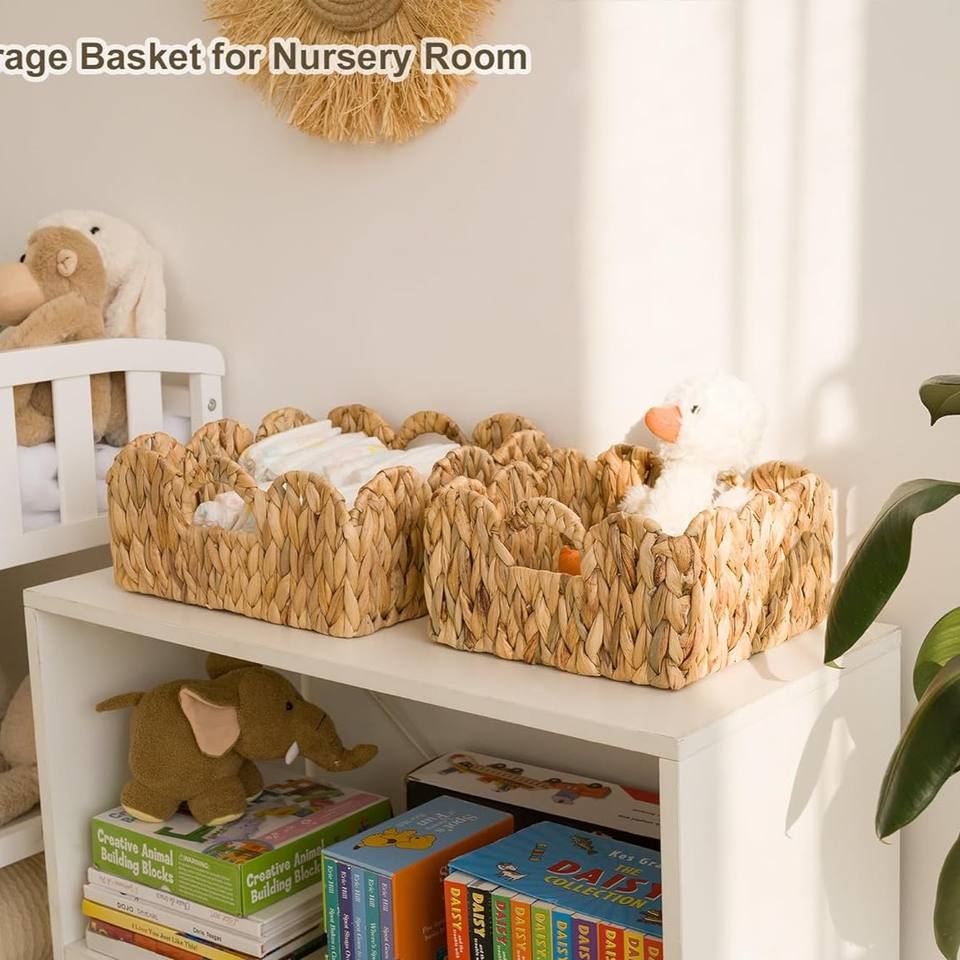 TienPhong 2024 Wholesale StorageWorks Natural Water Hyacinth Storage Baskets Set 2 Scalloped Edge Wicker Basket Shees Organizing