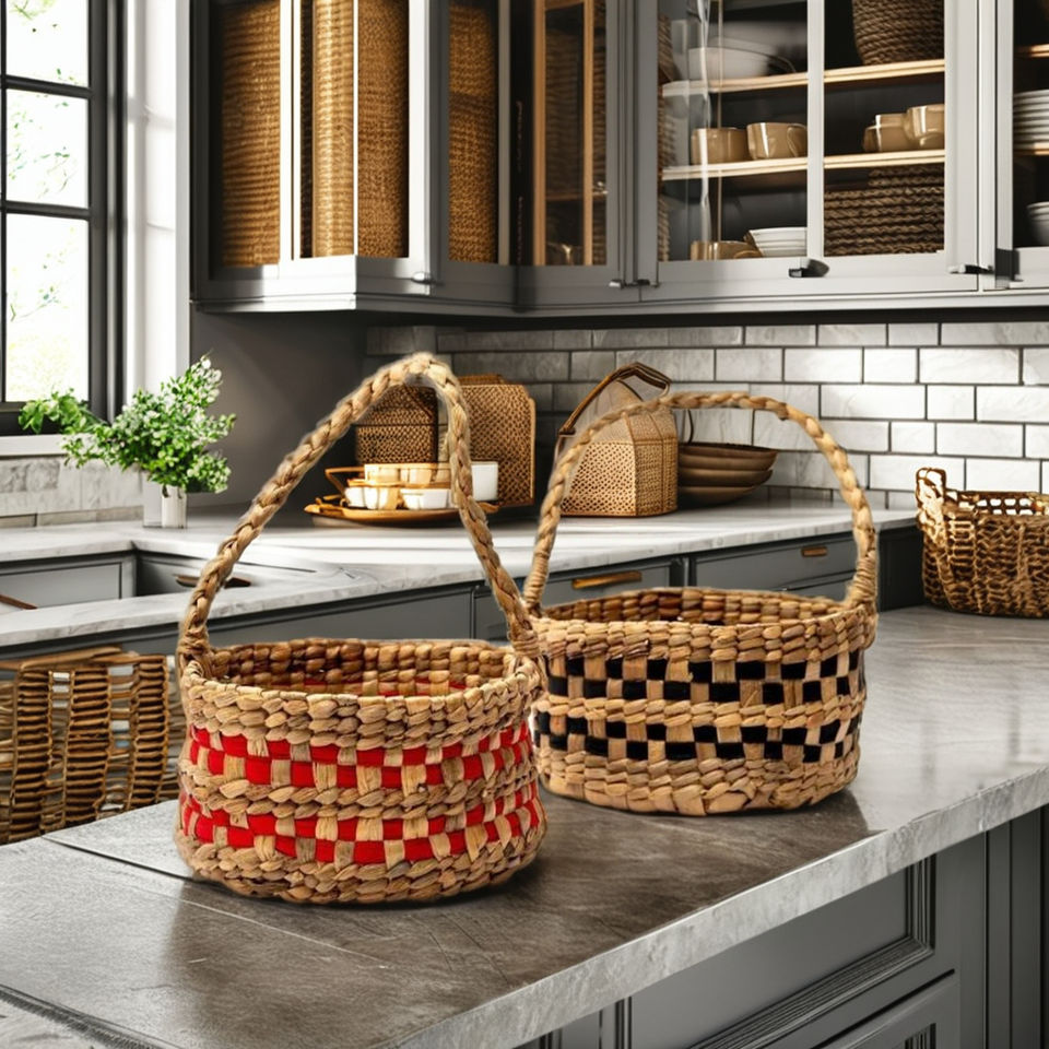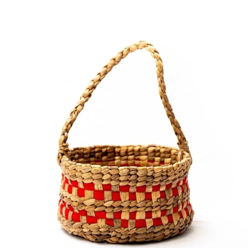 TienPhong Wholesale 2025 Handwoven Natural and Red/Blue Water Hyacinth Round Gift Hamper Basket for Gifts