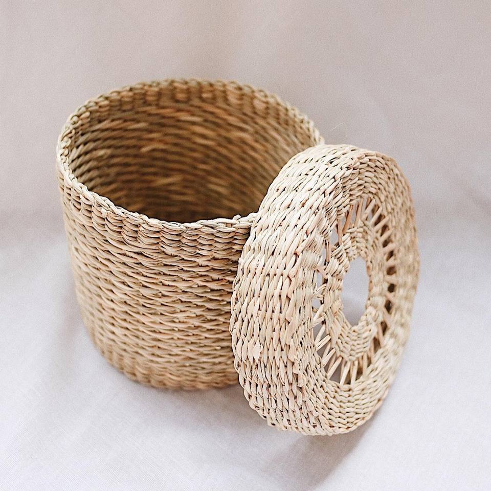 TienPhong Wholesale 2025 Handwoven Sedge Seagrass Basket Storage Box with Lid for Kitchen Dining Room Bedroom Interior Use