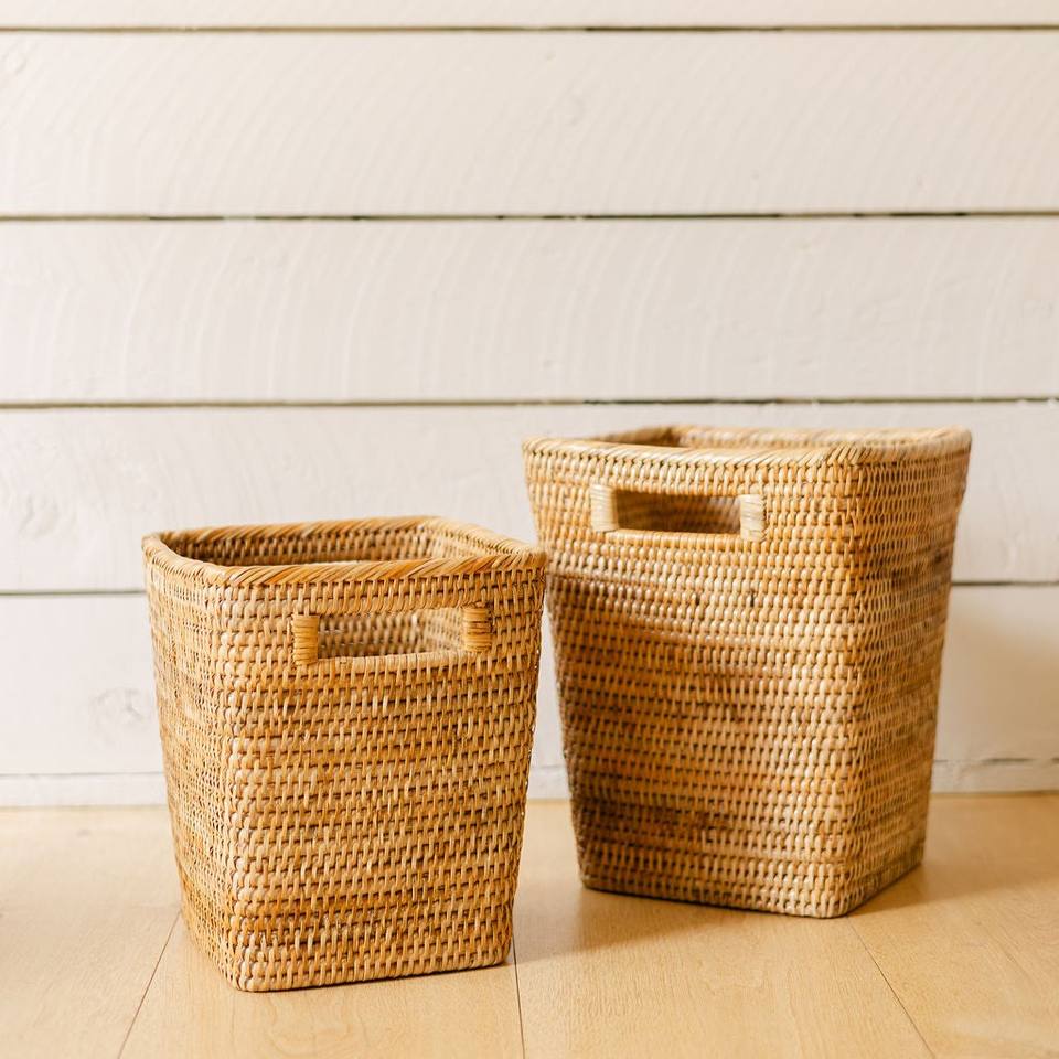 TienPhong Wholesale Rattan Square Waste Bin with Inset Handles - Handwoven Trash Can for Bathroom & Office