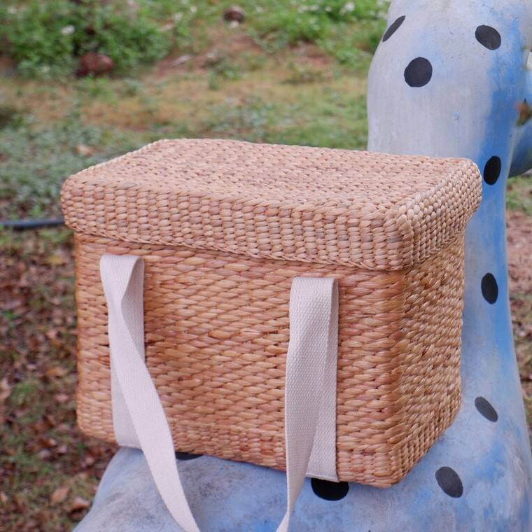 TienPhong Wholesale Rectangle Woven Hamper Basket with Lid, Straw Basket, Handwoven Basket, Wicker Hamper Picnic Basket