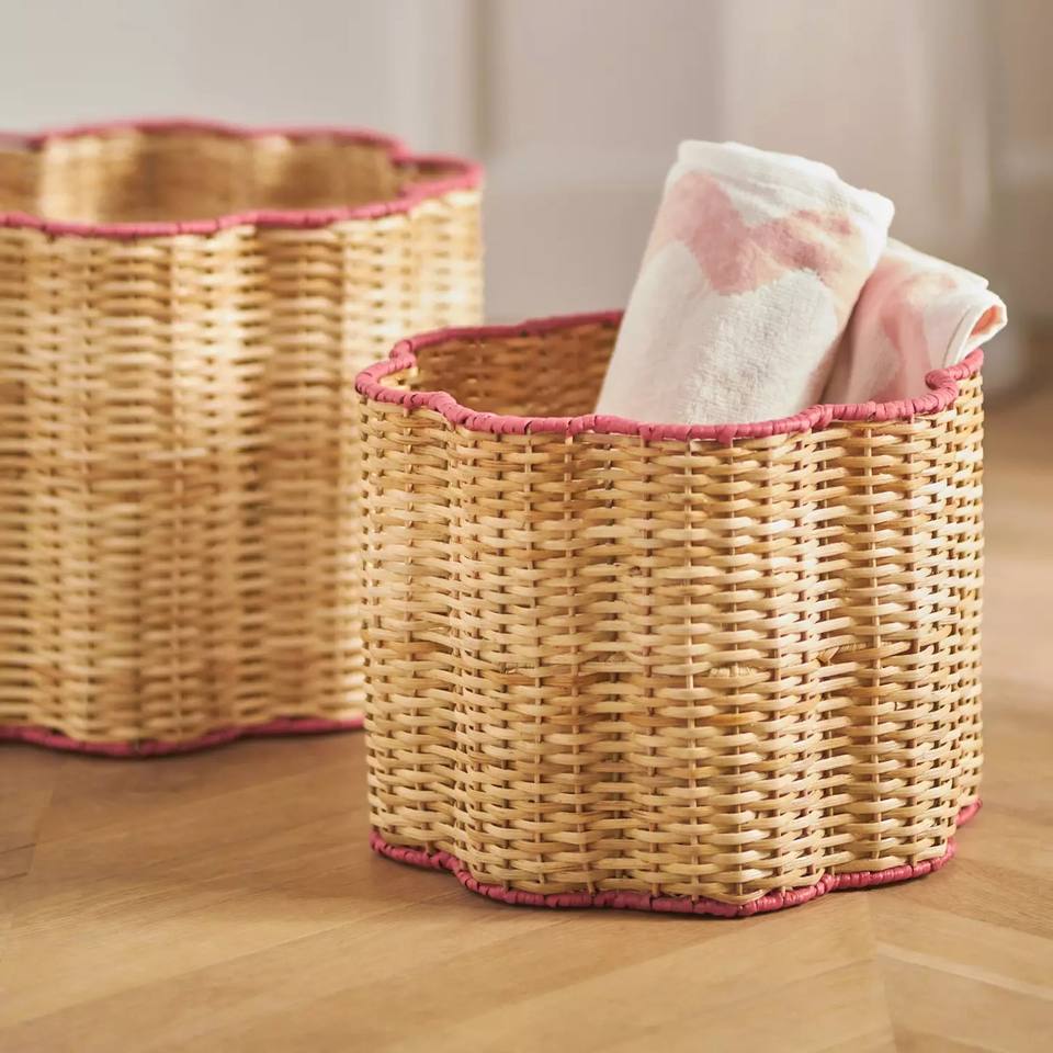 TienPhong Wholesale Vintage Hand Woven Tulip Rattan Nesting Storage Baskets, Set of 2 for Fruits Toys at Home
