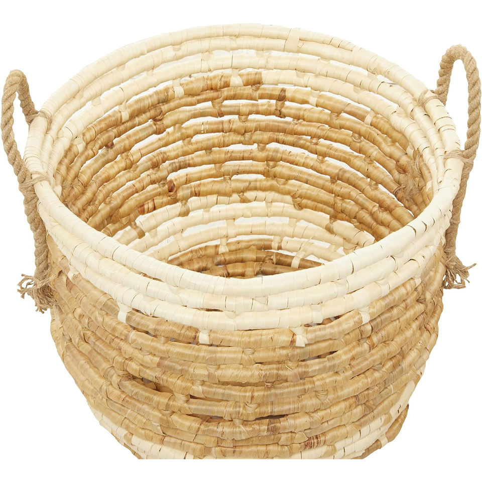 Tienphong 2024 Handmade Round Deco 79 Seagrass Handmade Two Toned Storage Basket with Handles, Set of 3