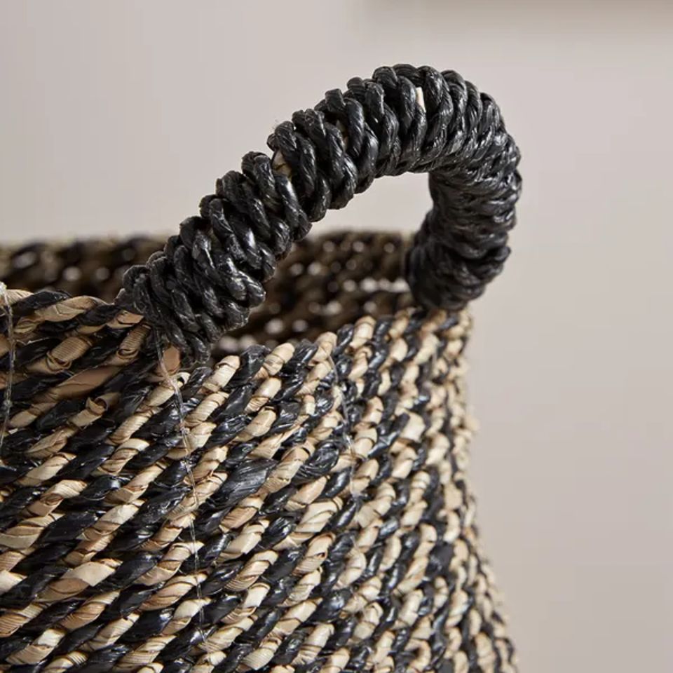 Tienphong Handicrafts Black & Neutral Basket with Handles, Laundry Basket, Clothes Basket, Pillow Basket for Your Cozy Home