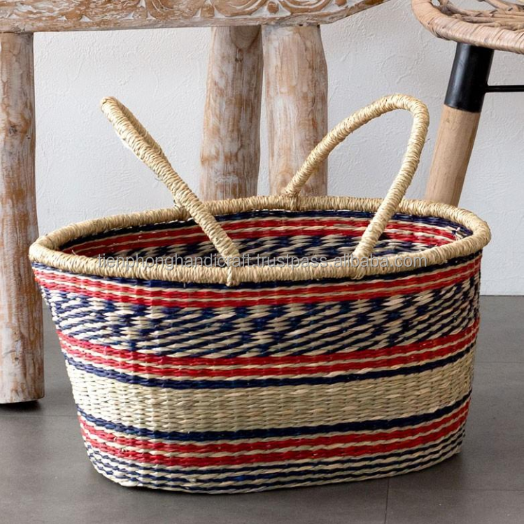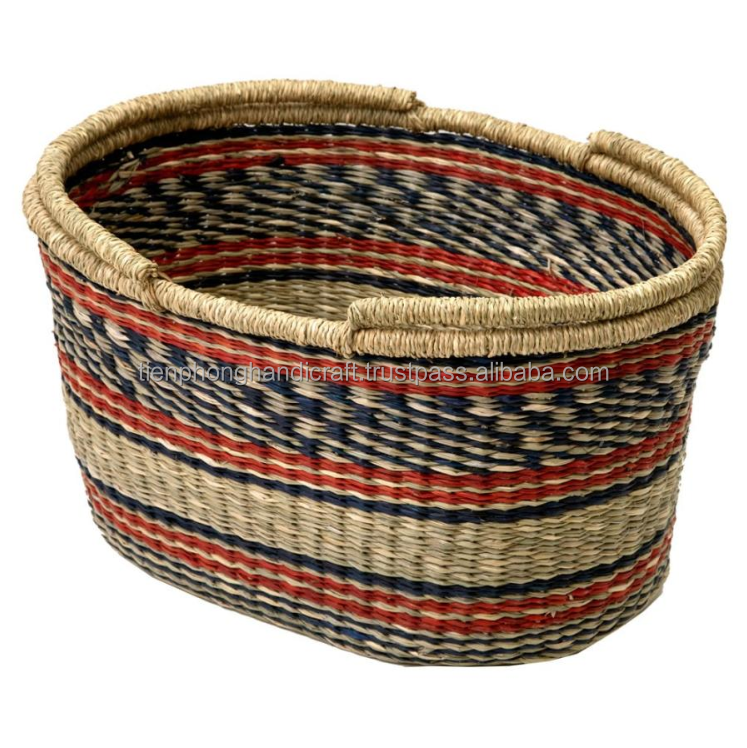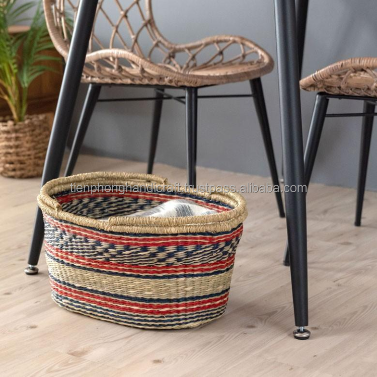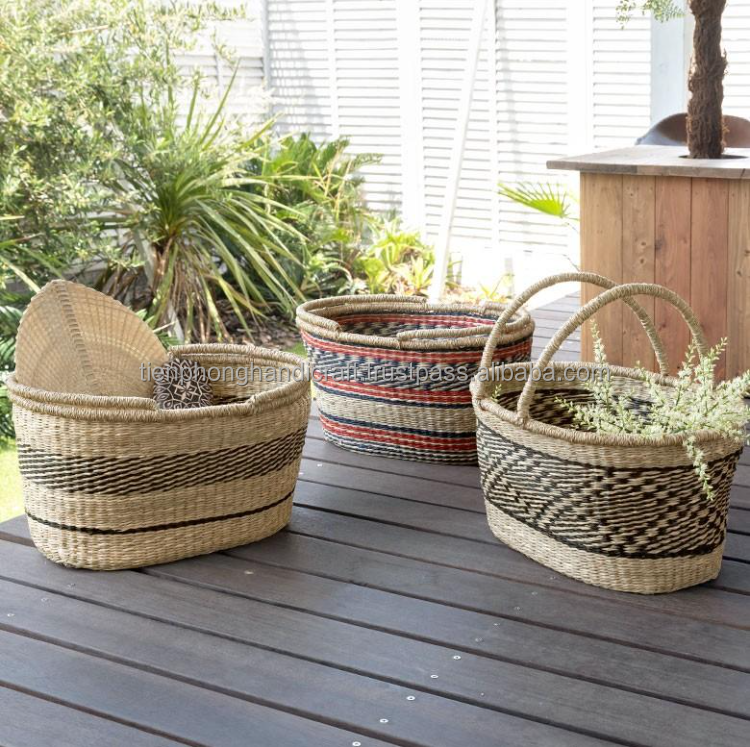 Tienphong Handicrafts Hot Product Seagrass Baskets with Handles | Clothes Storage Basket, Decorative Storage for Home Garden