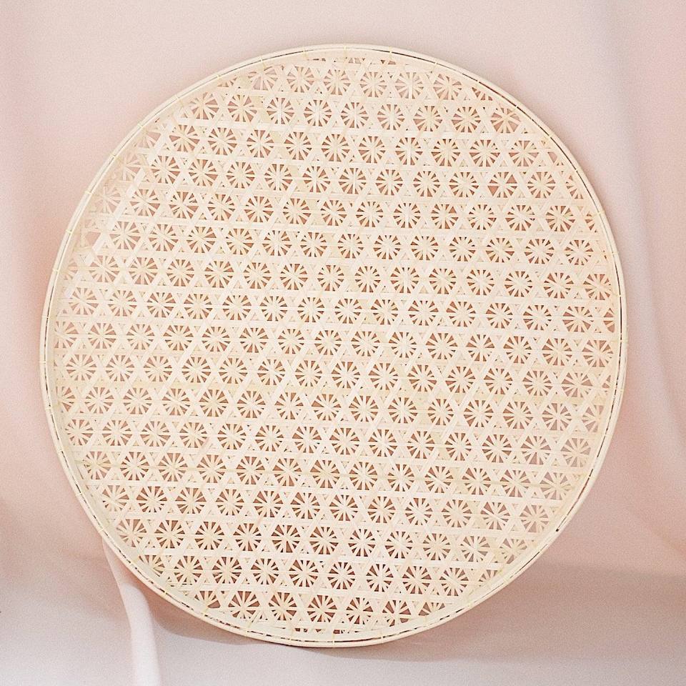 Tienphong Wholesale 2025 Handwoven Pikoon Vintage Bamboo Round Flat Basket Tray Decorative Gift Basket Desk Organizer