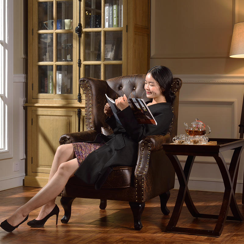 Tiger Chair Single Sofa American European Style Retro Leather Living Room Chair Brown Suede Finish LF-9005