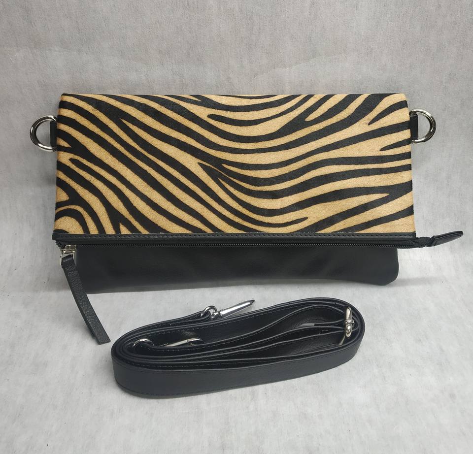 Tiger Hairon Fur Genuine Leather Women Bohemian Messenger Zipper Clutch Crossbody Handbag Bag Mobile Pouch Shoulder Handle Chain