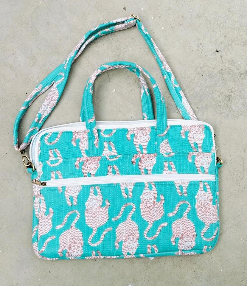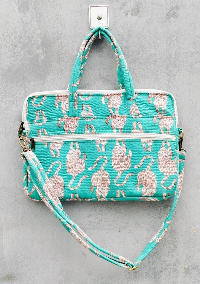 Tiger Print Cotton Quilted Laptop Bag Durable Lightweight Waterproof with Handle for Daily Use Office Vintage Business Style