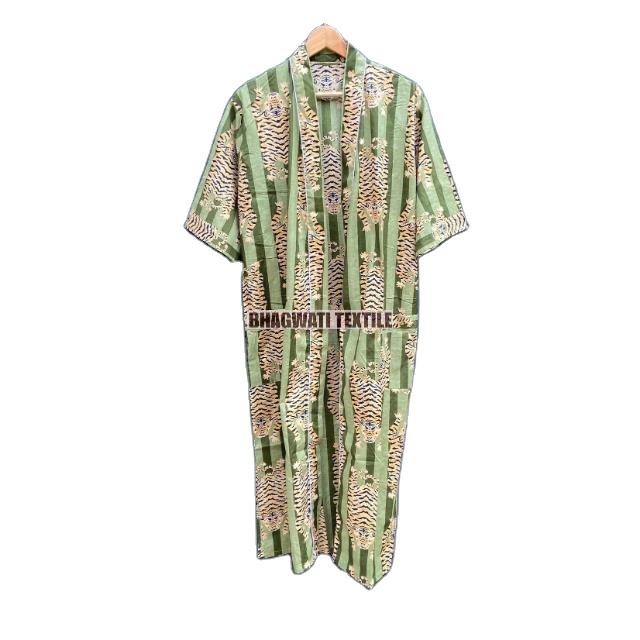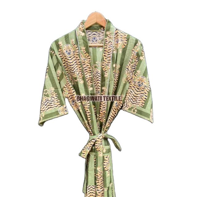 Tiger Printed Cotton Kimono Bathrobe Summer Turkish Cardigan Nightwear Dressing Gown for Beach or Christmas Day Gift