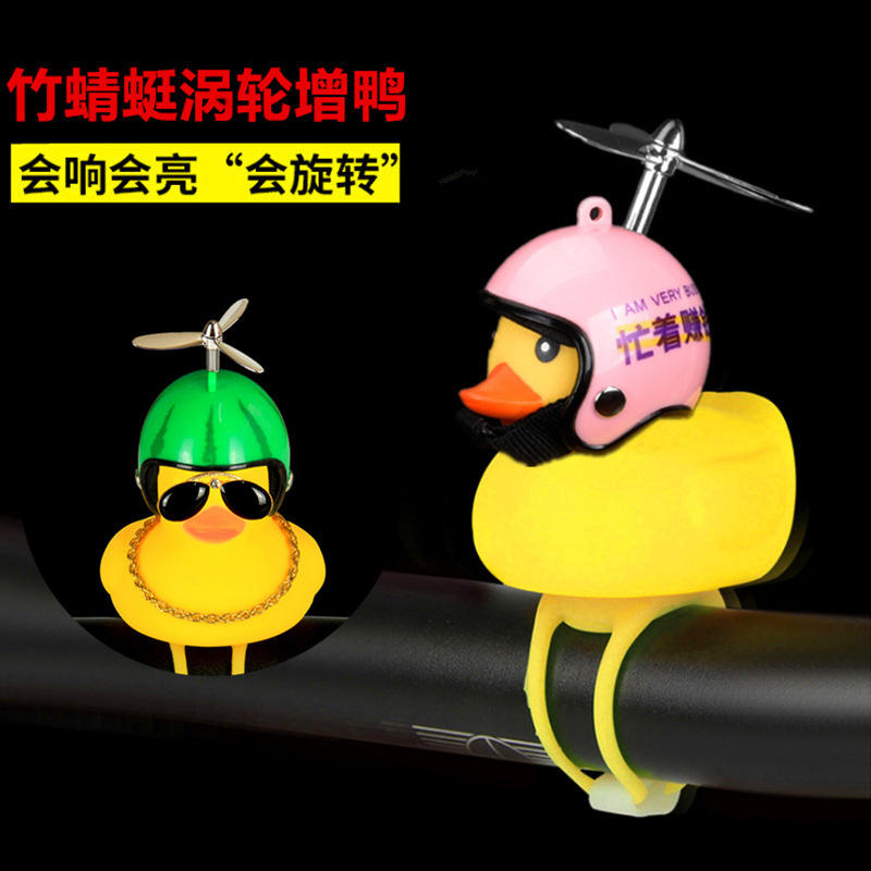 TikTok Duck Bicycle Bell With Rotating Propeller Helmet Design For Kids Bike Safety Accessory Battery Powered