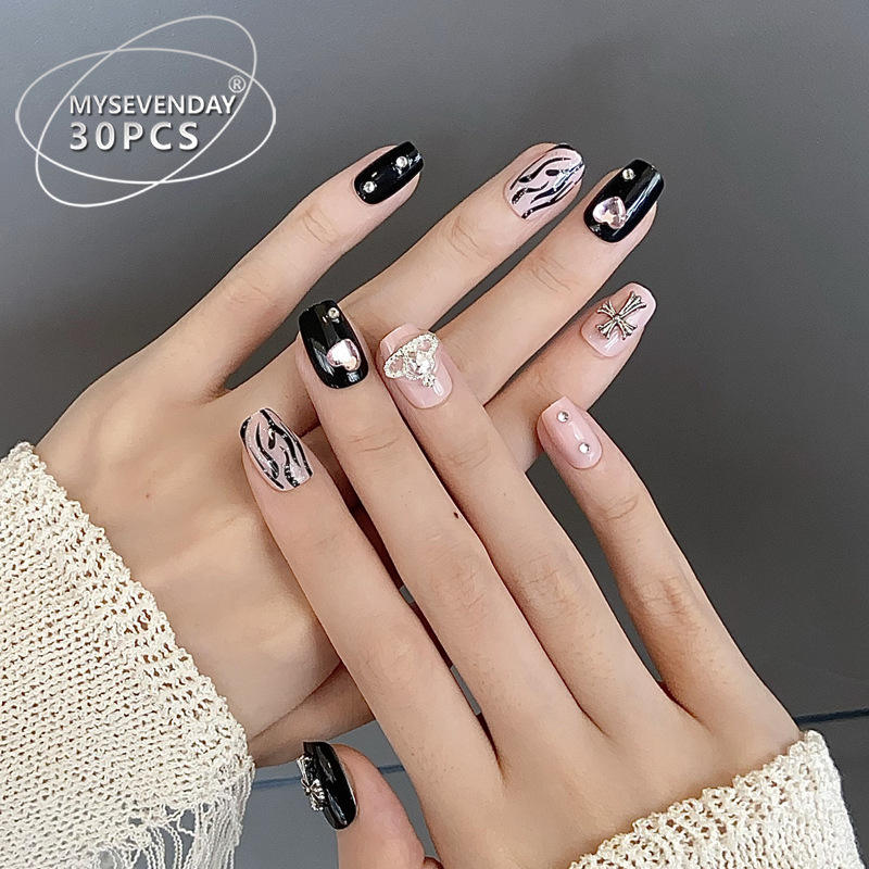 TikTok Hot-Selling Hot Girl Wearable Nails Handmade Crown Cross Heart Rhinestone Fake Nail Tips Custom Processing
