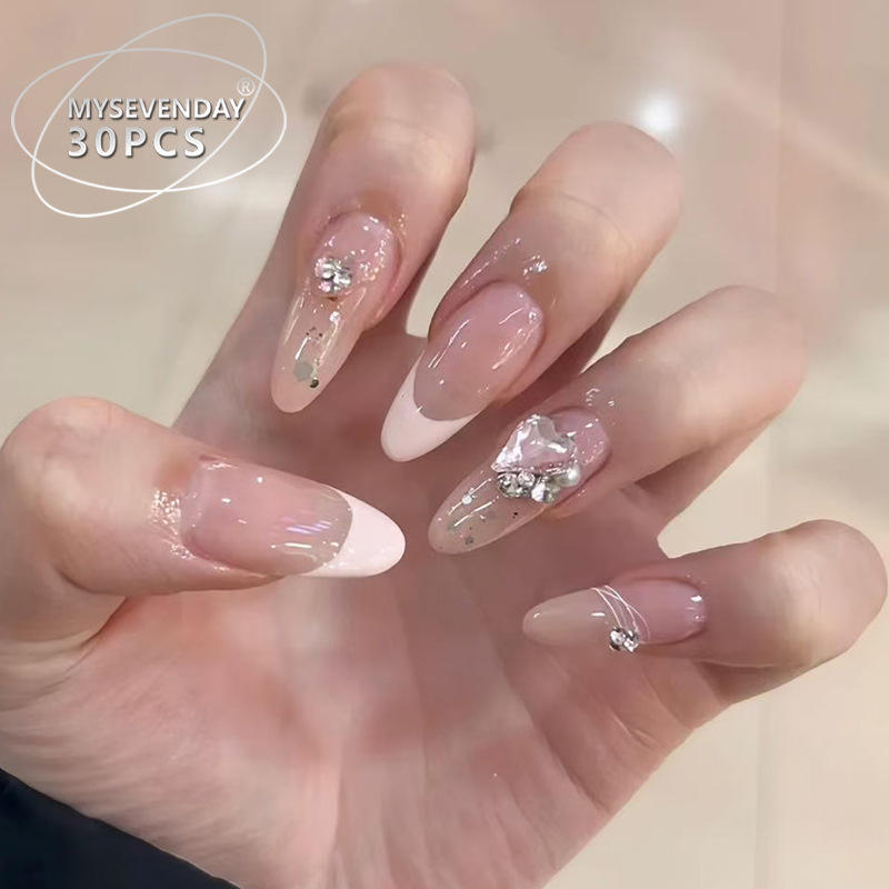 TikTok Hot-Selling Nail Art Dreamy Dynamic Crystal Cat Eye Fake Pure Desire Gradient Flashy Hot Girl Handmade Wearable Nails