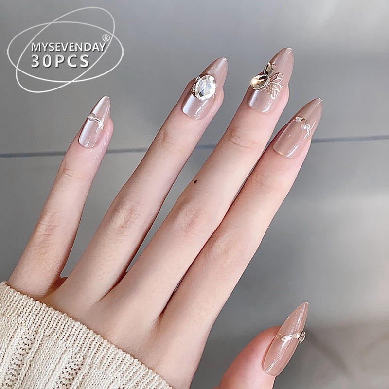 TikTok Hot-Selling Wearable High-End Butterfly Glitter Handmade Tips Finished Removable Fake Nail Stickers