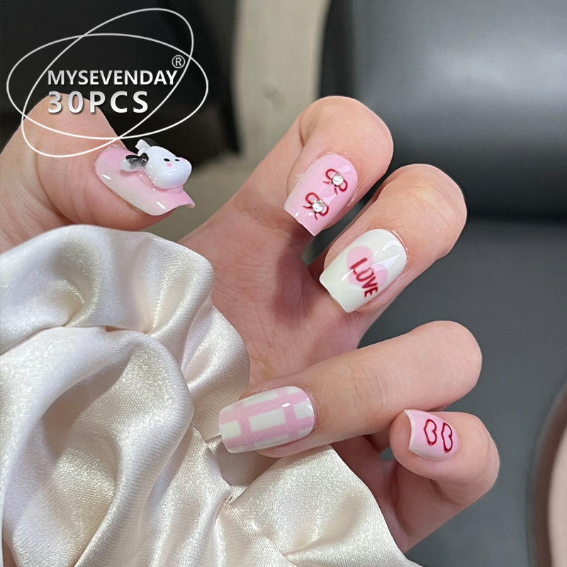 TikTok Hot-Selling Wearable Nails Short Handmade Detachable Heart Rhinestone Bow Fake Nail Tips Wholesale