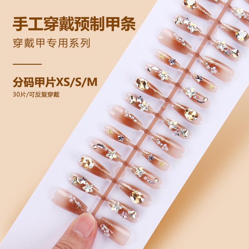 TikTok Hot-Selling Wearable Star Rhinestones Handmade Tips Sweet Style 30 Pieces Detachable Finger Nail Stickers