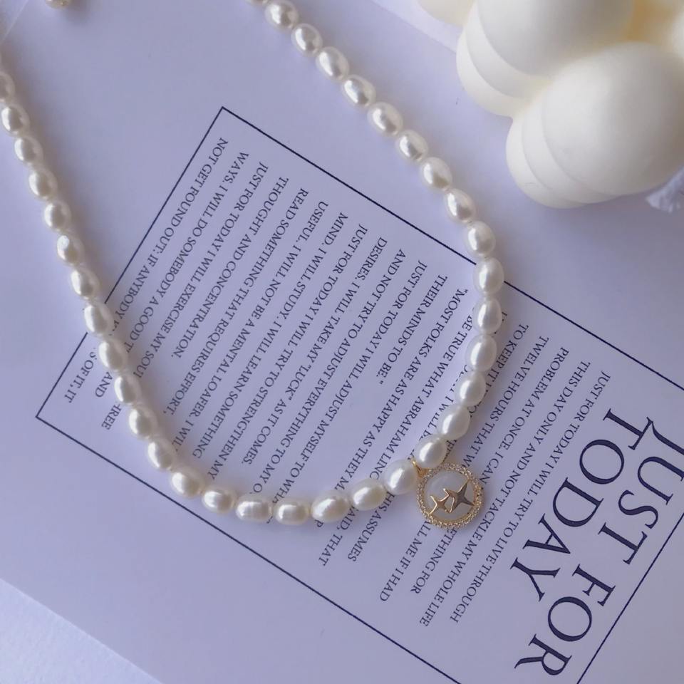 TikTok Style 18K Gold Zircon Pendant Necklace with Cat's Eye Star Plate Freshwater Pearl & High-Level Collar Chain