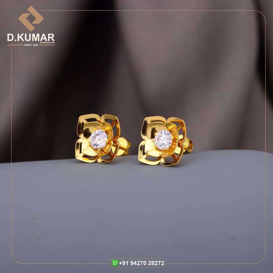 Timeless 22K Gold Earrings for Women Floral Studs with Sparkling Solitaire Center