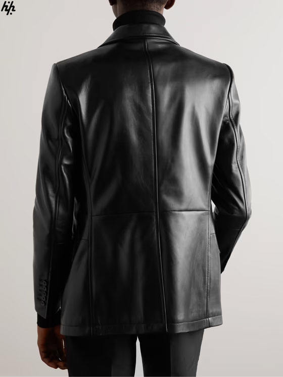 Timeless Designer Slim Fit Stand Collar Suit Jacket Sleek Black Cowhide Leather Breathable Windproof Winter Long Lasting Wear