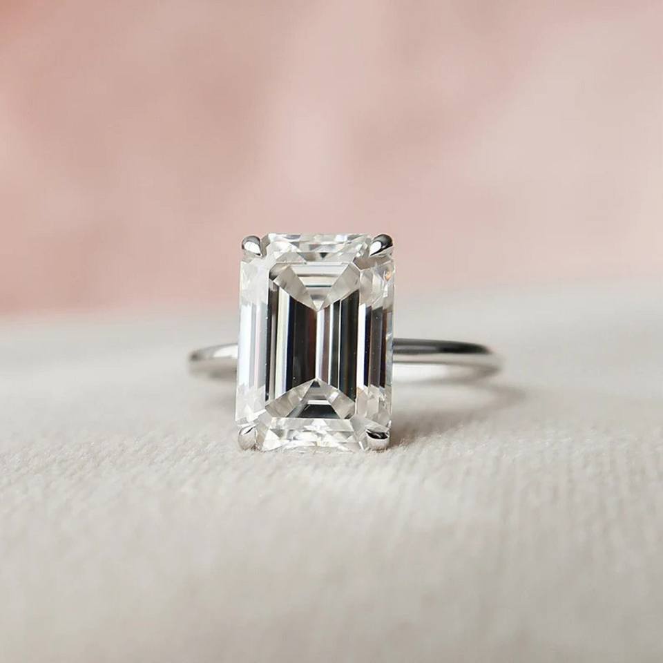 Timeless Emerald Cut Moissanite Solitaire Ring with Four Claws and Artisan Crafted Bow Hidden Halo Perfect Wedding Ring for Her