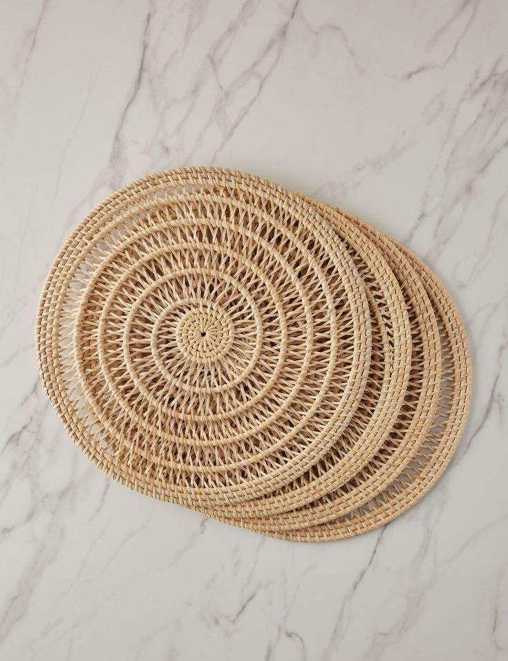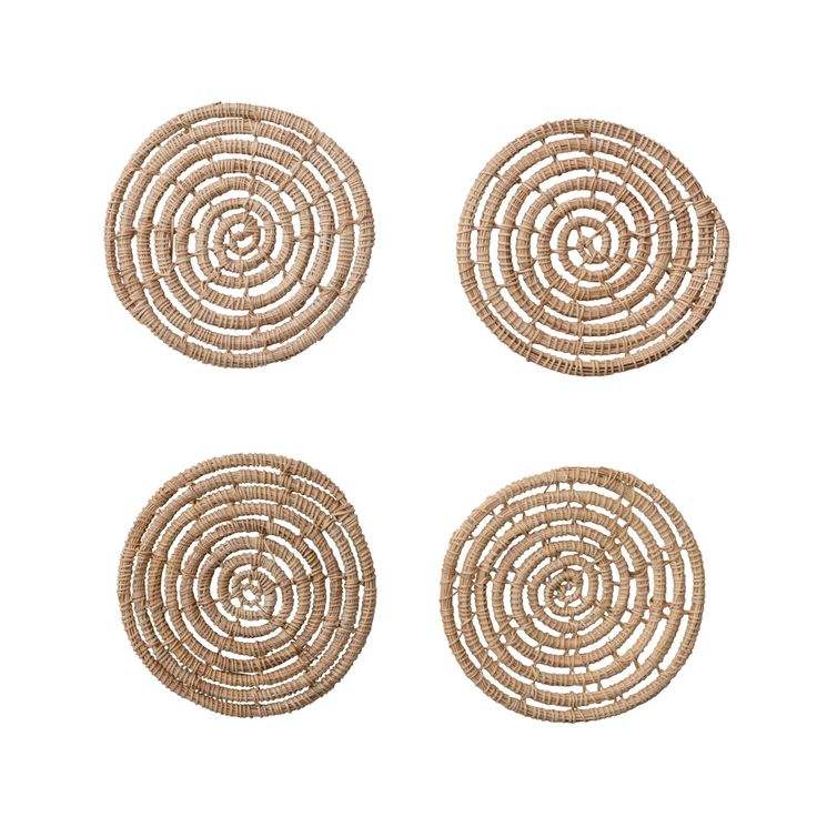 Timeless Handmade Natural Rattan Coasters Four Pack Spiral Light olid Woven Design Hot Drink Protection Boho Tabletop Decor