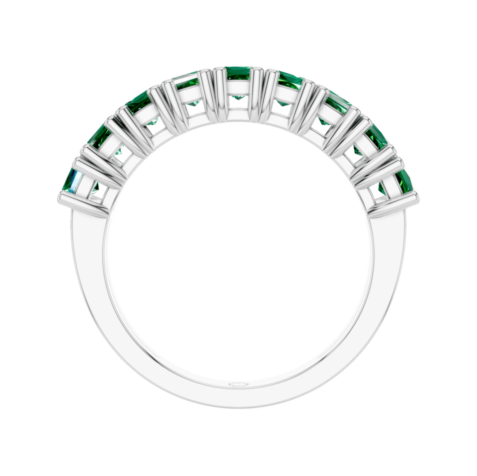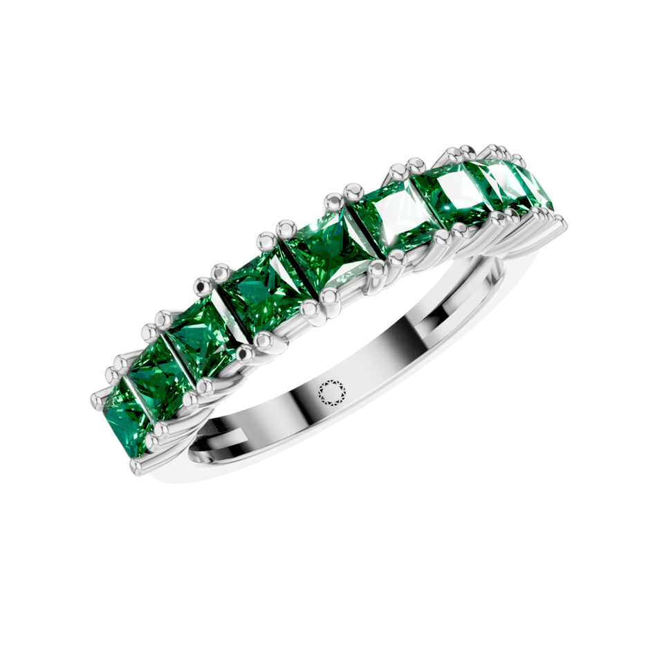 Timeless Princess-Cut Emerald Band White Gold or Silver Ring with Classic Setting in Premium Precious Metal