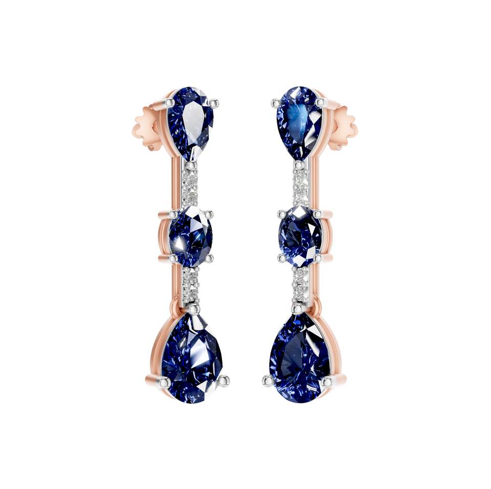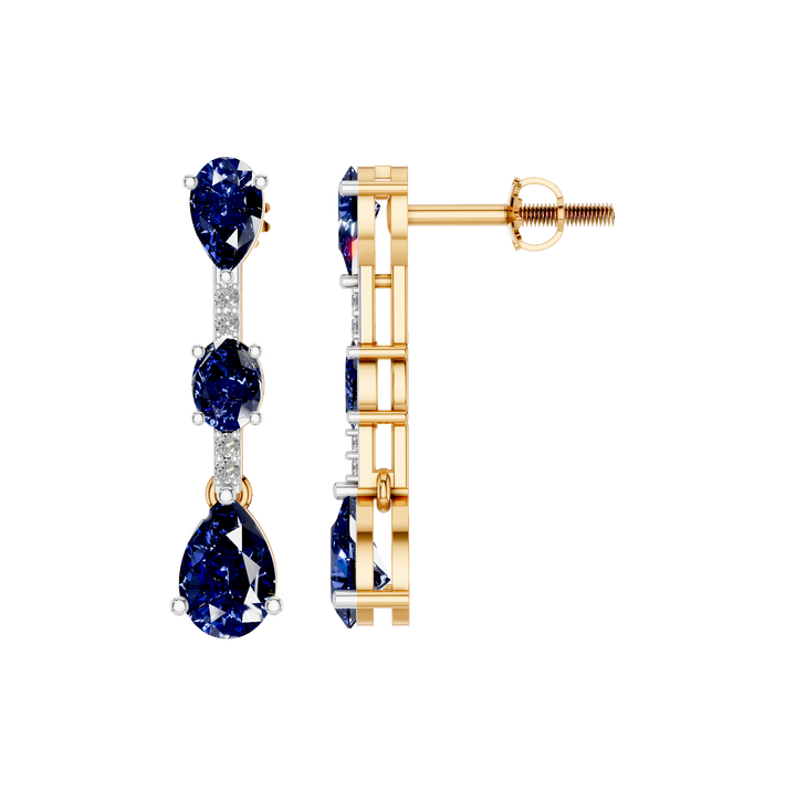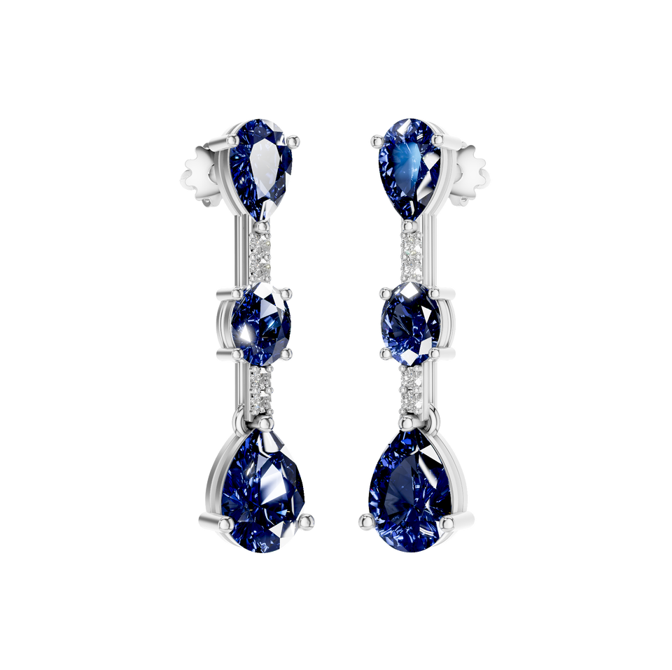 Style:Elegant Natural Pear-Cut Sapphire and Oval Gemstone Earrings