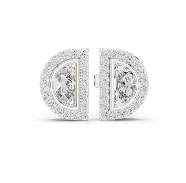 Timeless Yellow Gold Stud Earrings With Half Moon Design And Halo Of Diamonds For Everyday Glamour From India