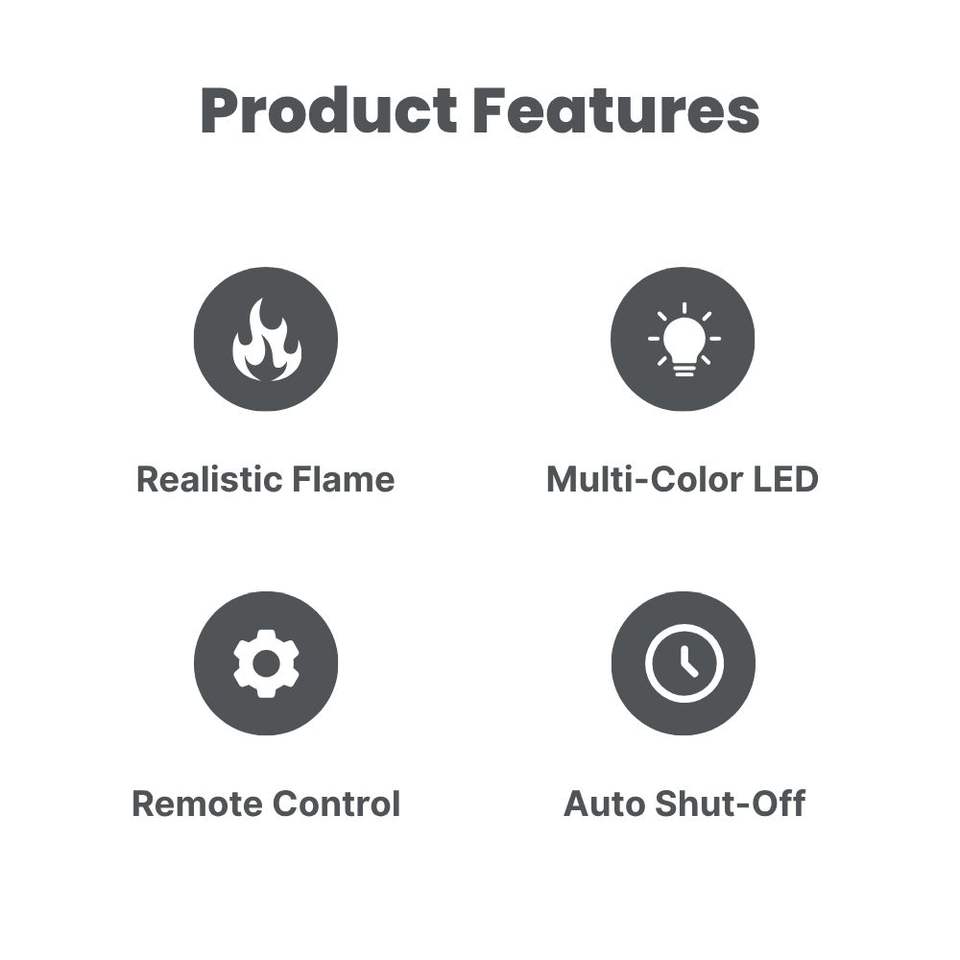 Seven-color ambient lighting, Remote control available, Timer function available (6-8-10 hours), Automatic power-off when water is low
