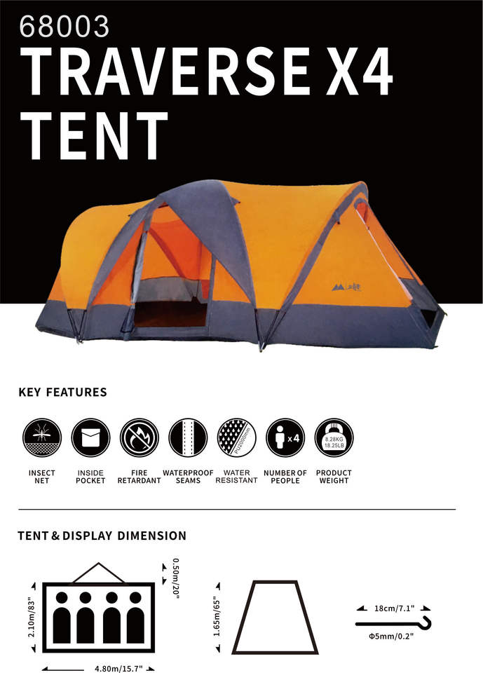 Timor-Leste Luxury 4-Person Four-Season Water Resistant 2000mm Tube Type Hiking Biking Tent One Bedroom Outdoor Camping Glamping