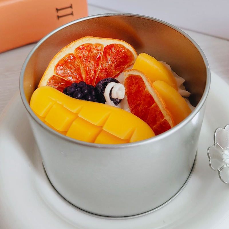 Tin can cake scented candles soy wax decor novelty candles luxury private label aroma creative fruits candle for party holiday