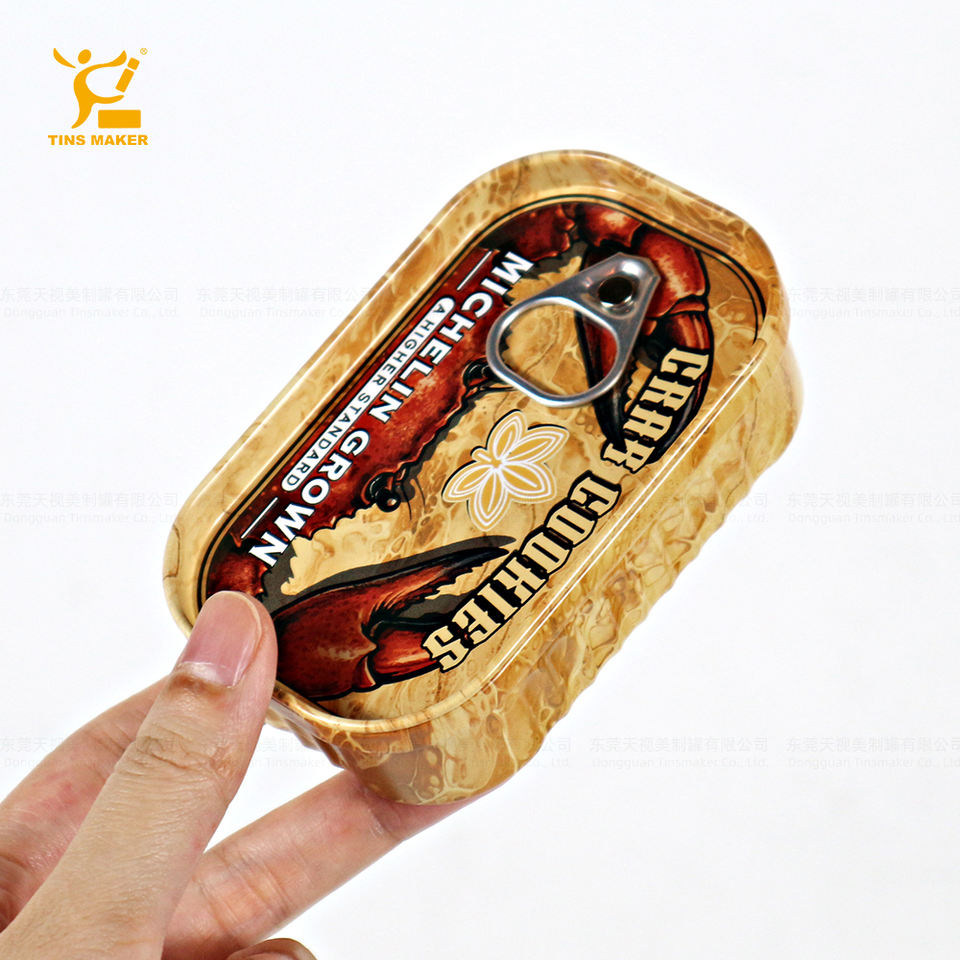 Tinsmaker Custom Logo Printed Oem Odm Food Grade Empty 125g Sardine Reusable Tin Can Rectangular Sardine Style Tin Manufacturers