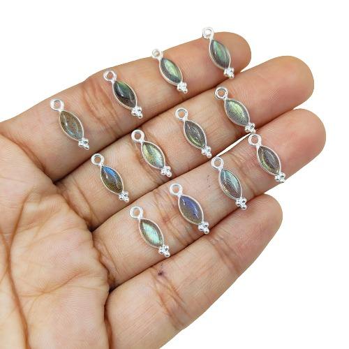 Tiny Labradorite 8x4mm Marquise Shape Pendant 925 Sterling Silver Fancy Bezel DIY Jewelry Making Flashy Gemstone Boho Charm