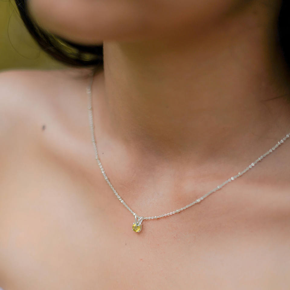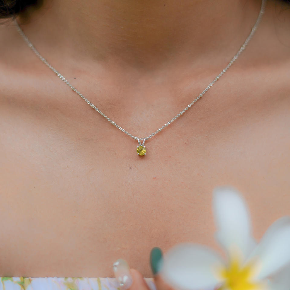Tiny Round Peridot Gemstone Prong Set Charm Pendant Necklace 18 Inch Delicate Chain Jewelry Birthstone Charms for Women