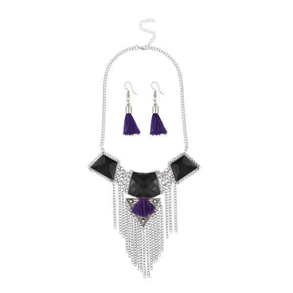 Tip Top Fashions 1111702B Rhodium Plated Resin Stone Thread Necklace Set Fashion Jewelry Accessory